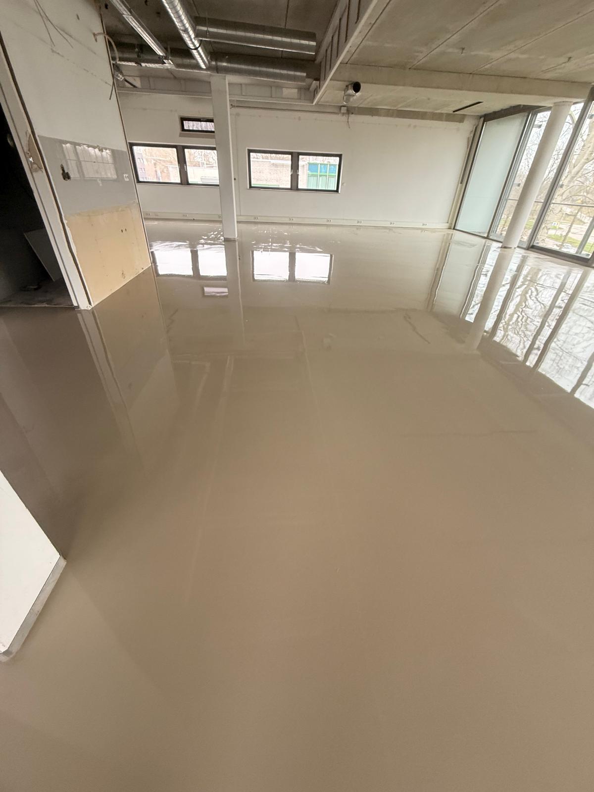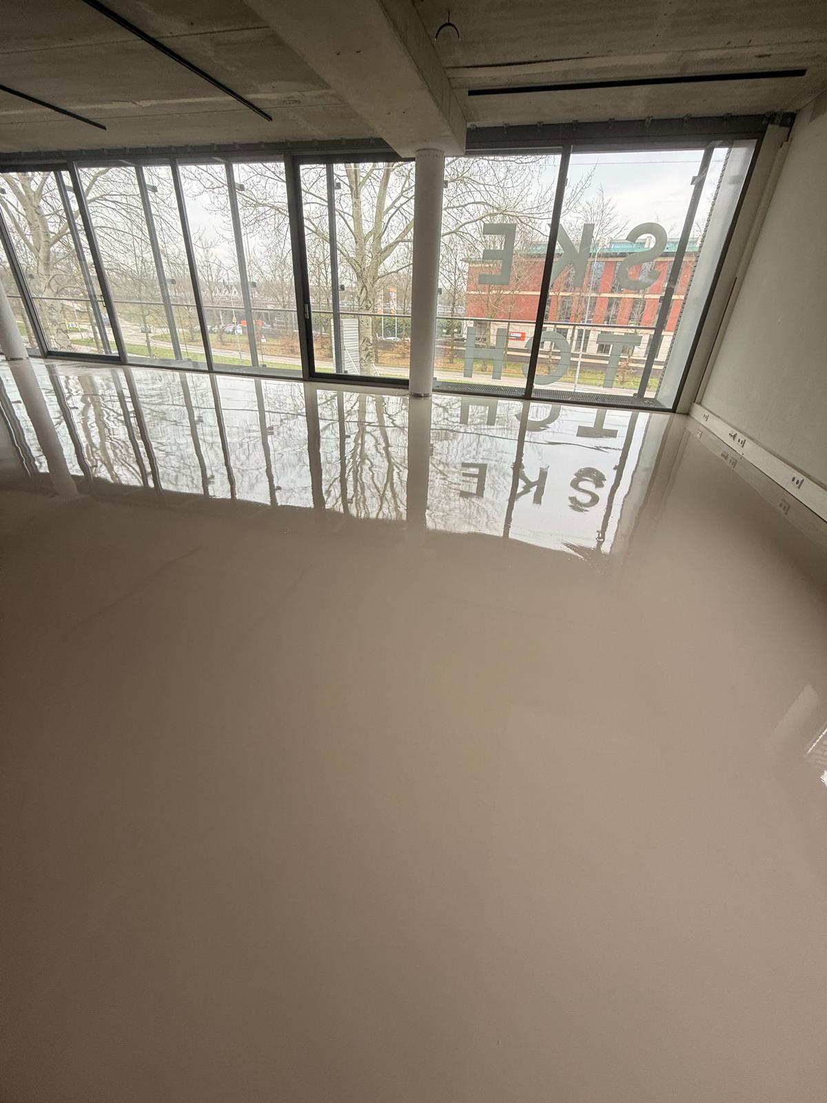 Voor dit zakelijke project hebben we de volledige vloer van het kantoorpand geëgaliseerd: